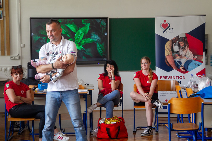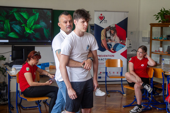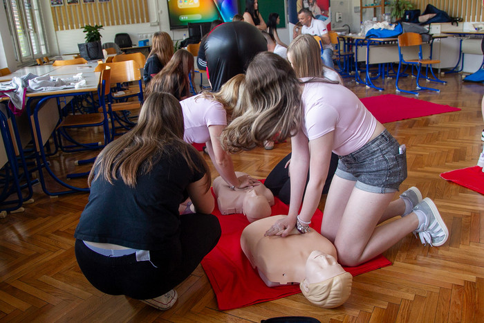 V drugem, praktično obarvanem delu, so srednješolci zavihali rokave in se preizkusili v temeljnih postopkih oživljanja, uporabi AED, pravilnem ukrepanju ob zapori dihalnih poti in drugih scenarijih, kjer je potrebno znanje prve pomoči.